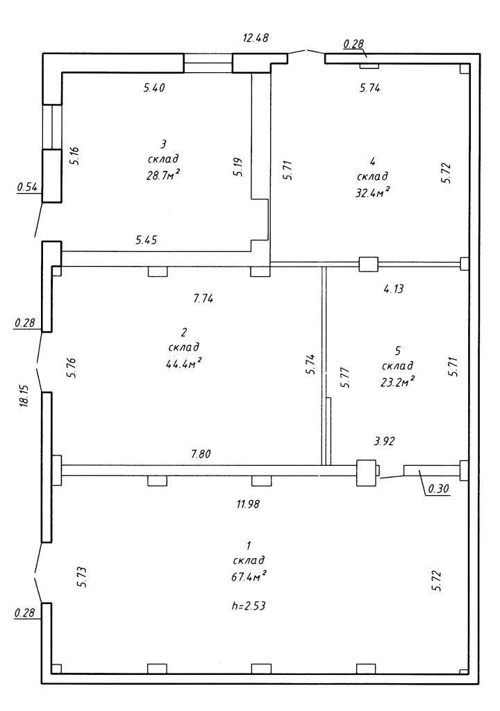 2) кирпичный склад площадью 196,1 кв.м.